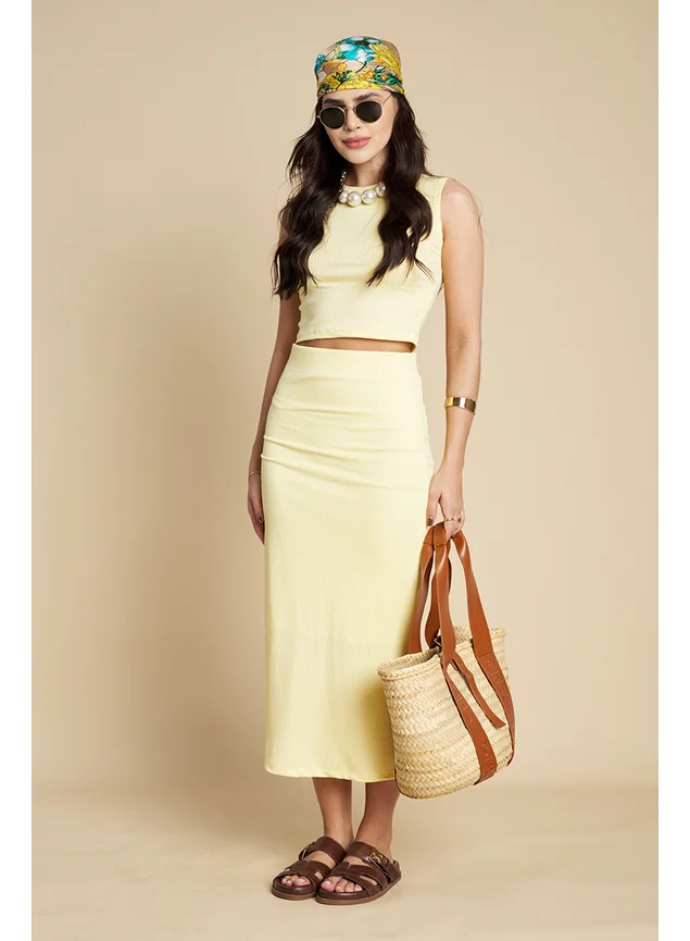 A saia midi canelado Yara é uma peça elegante e versátil que combina conforto e estilo. Confeccionada em um tecido canelado de alta qualidade, essa saia apresenta uma textura sutil que traz um toque sofisticado ao visual. Seu comprimento midi é perfeito para diversas ocasiões, permitindo combinações tanto casuais quanto mais formais.